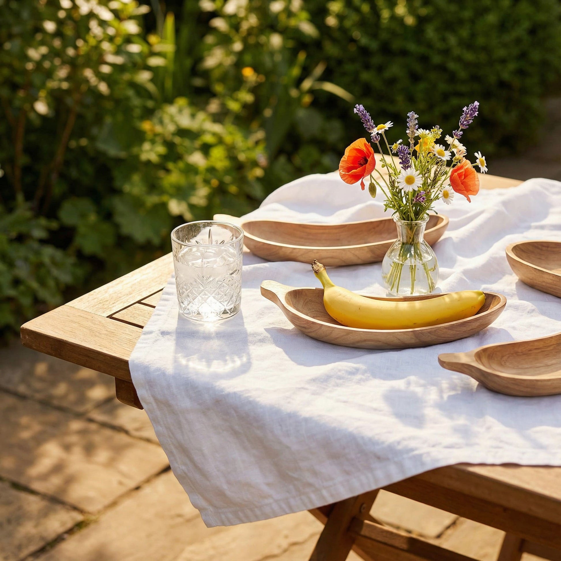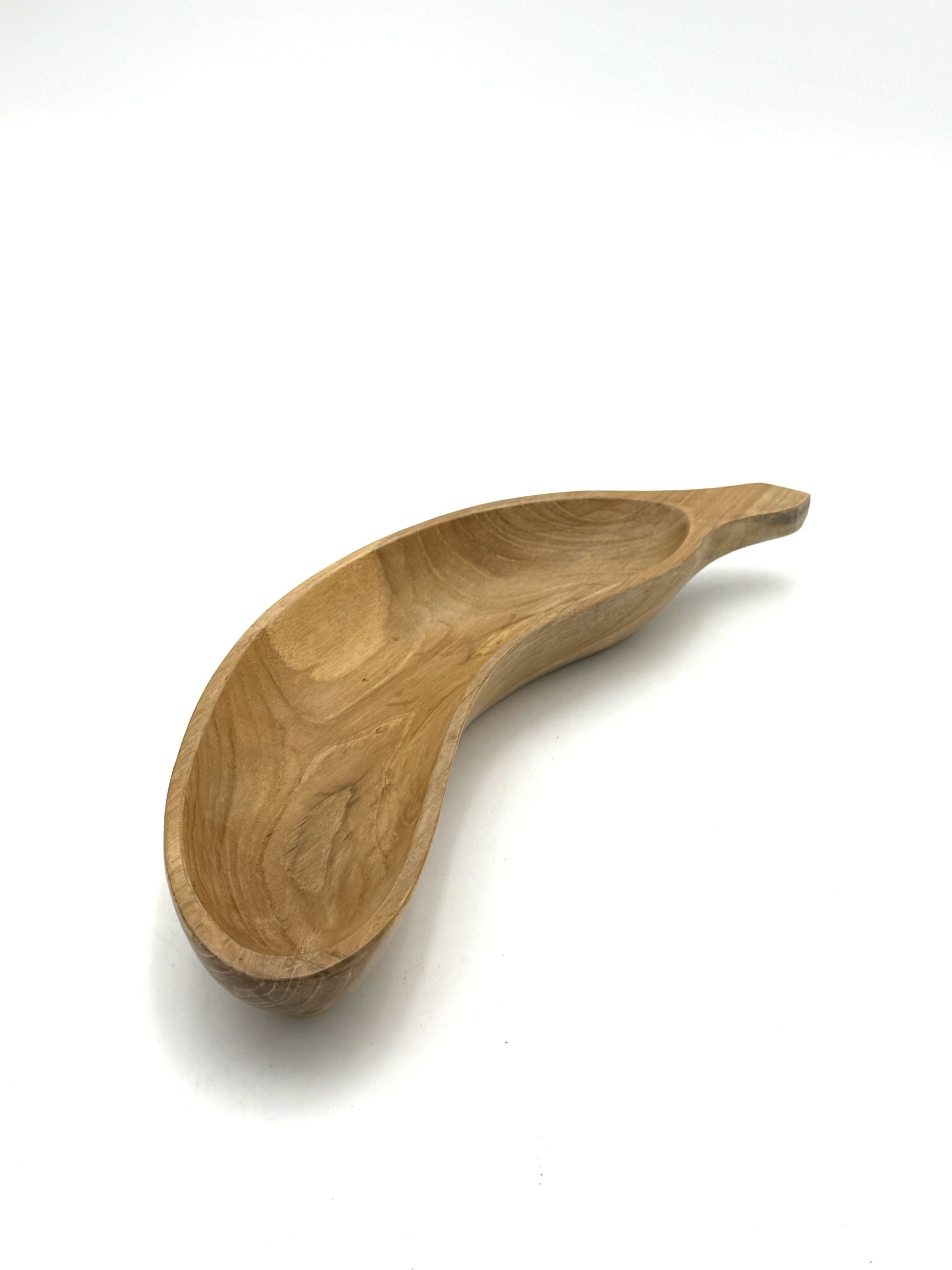 Realizzata artigianalmente in legno di teak, questa ciotola a forma di banana unisce praticità e design naturale.