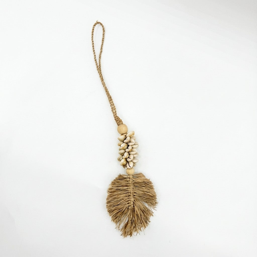 Embrasse conchiglie e foglia rafia