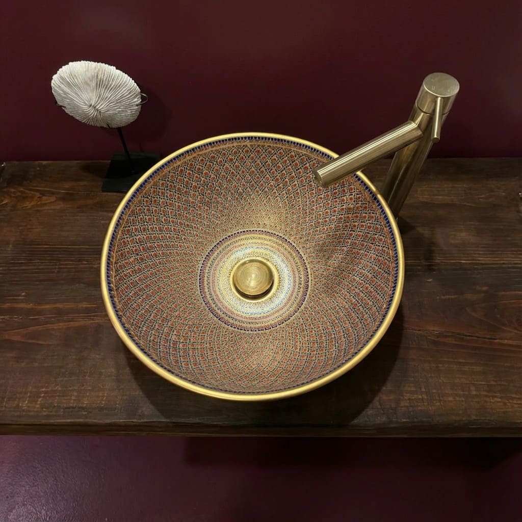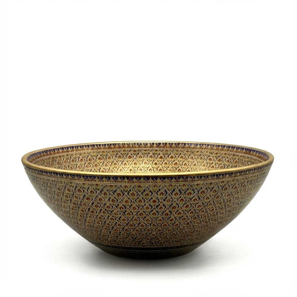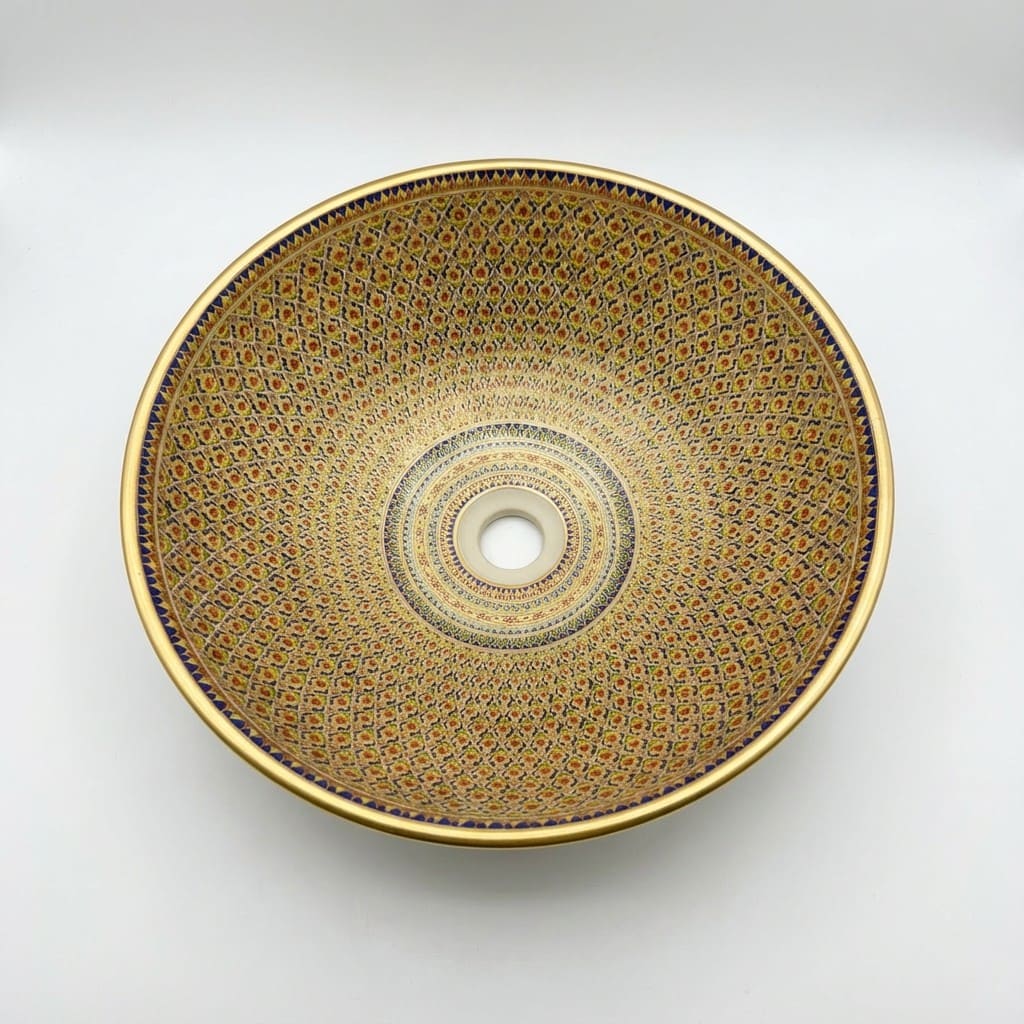 Un capolavoro di artigianato: questo lavandino in ceramica Benjarong è interamente dipinto a mano su uno sfondo d’oro. Le decorazioni, ispirate alla tradizione Thailandese, raccontano un’arte antica fatta di pazienza e precisione. Un oggetto prezioso che porta luce e raffinatezza in ogni ambiente.