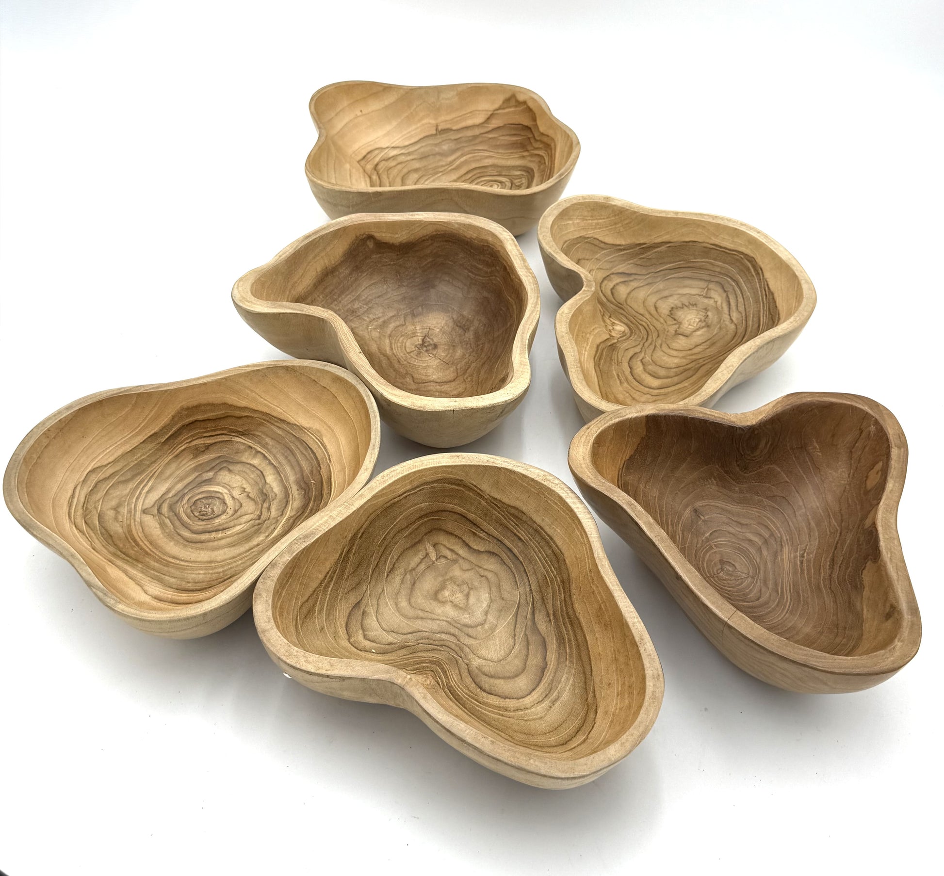 Realizzata artigianalmente in legno di teak, questa ciotola unisce praticità e design naturale. La sua forma a nuvola è perfetta per servire o decorare con stile.